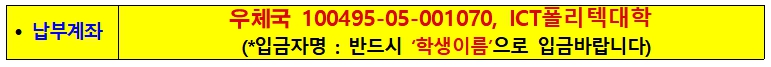 아. 택배 발송 : 주소(경기도 광주시 순암로 16-26 ICT폴리텍대학 생활관)