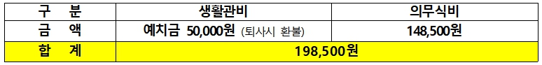 가. 입사서류 제출(온라인) 및 기숙사비 총198,500원(예치금50,000원+의무식비148,500원) 납부
