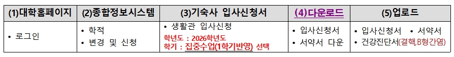 3. 기숙사 입사신청 및 납부 기간 : 2026. 1. 19(월) ~ 2026. 1. 23(금)